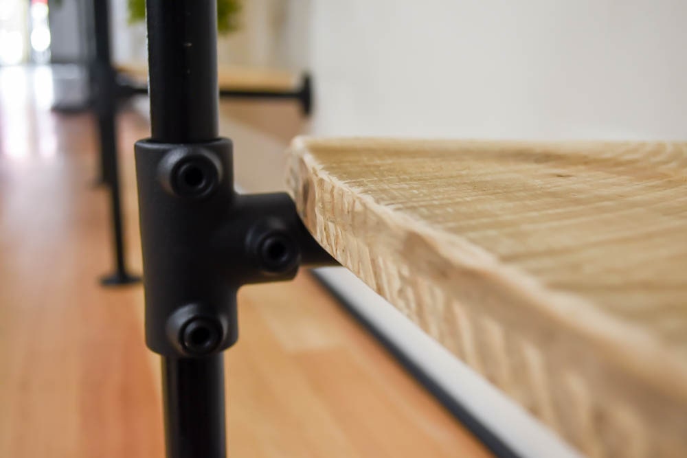 Pipe and fittings are powdercoated with a soft texture and low sheen finish. This allows for a quality feel and easy clean solution.
