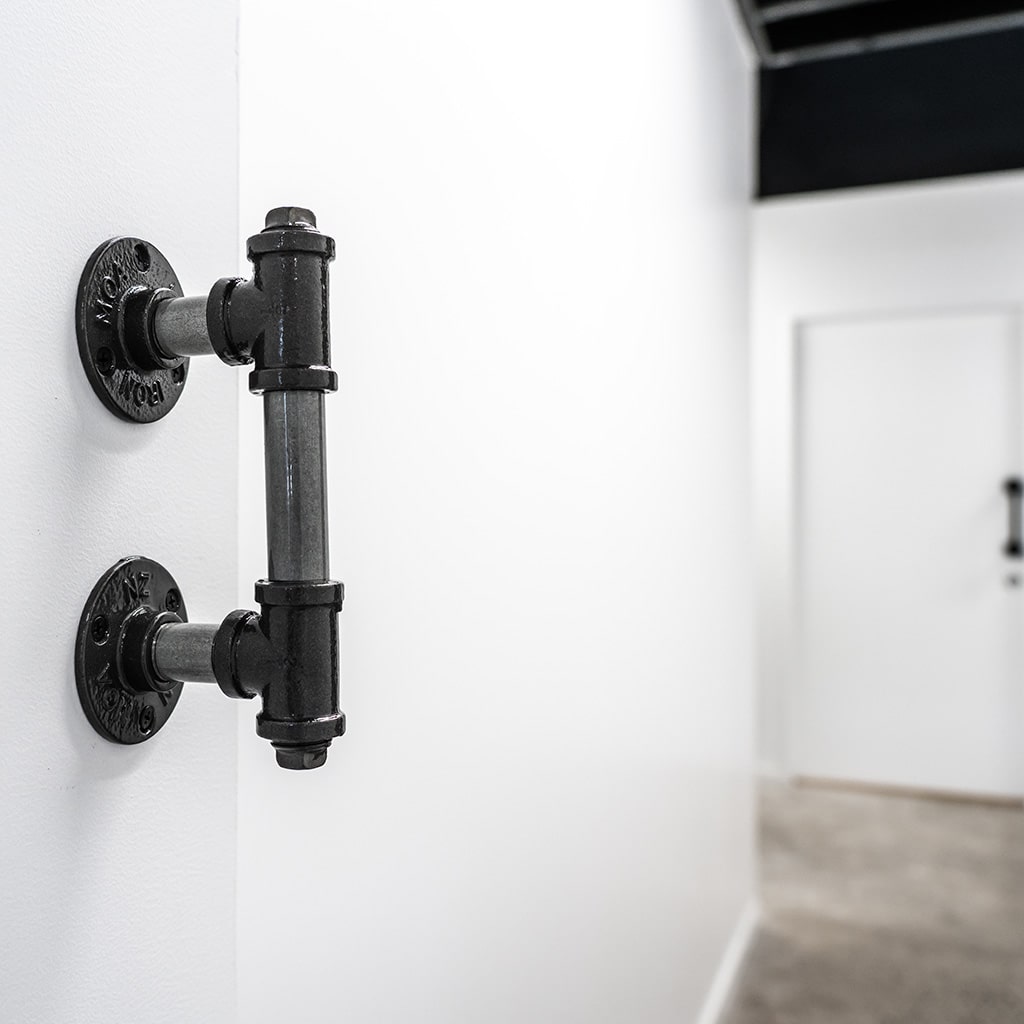 Pipe and fittings are powdercoated with a soft texture and low sheen finish. This allows for a quality feel and easy clean solution.